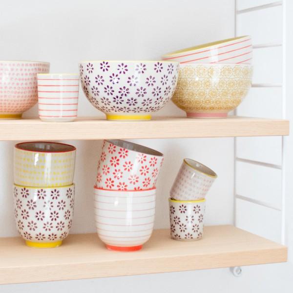 Mugs, tasses, assiettes…tous les articles de vaisselle sont en grès / céramique avec des couleurs douces et des motifs différents qui les rendent uniques.